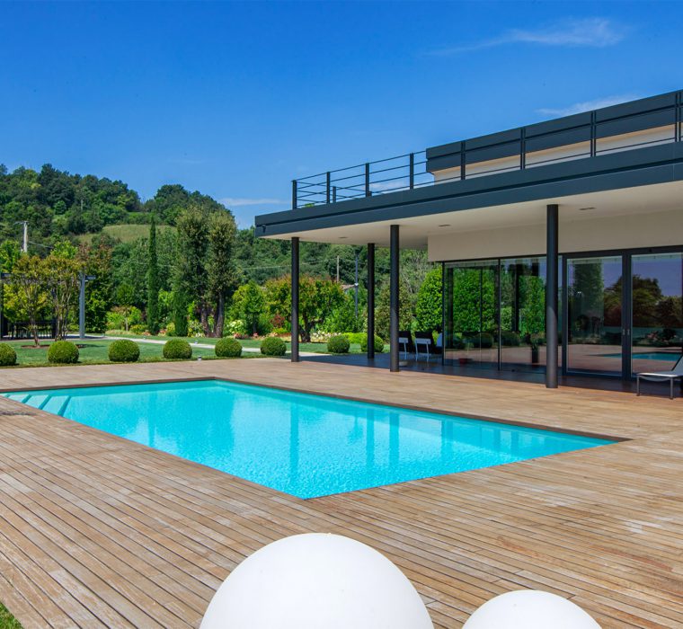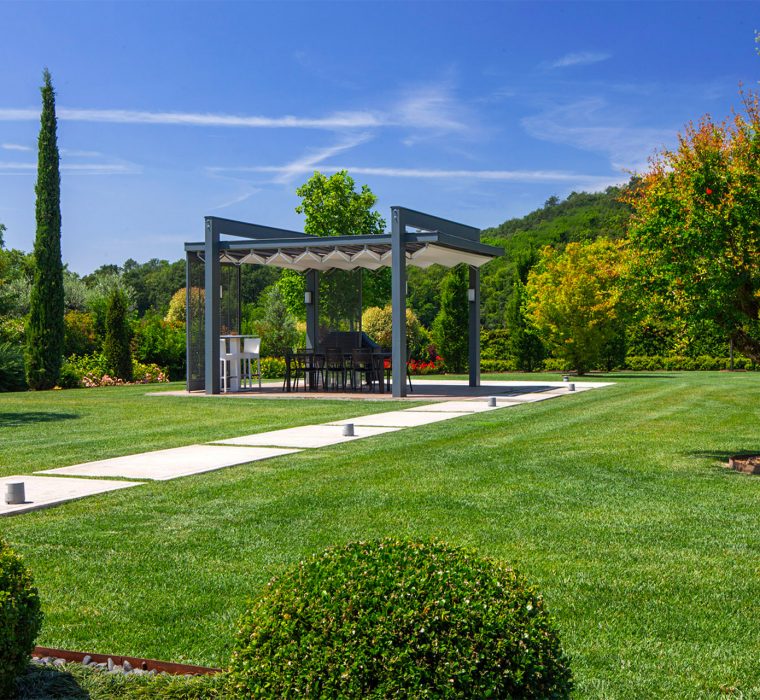 Ne sono un esempio la splendida piscina ammirabile dalla zona living e il gazebo in posizione esclusiva, a creare un angolo separato in cui godere delle giornate all’aperto lasciandosi alle spalle le incombenze quotidiane.
