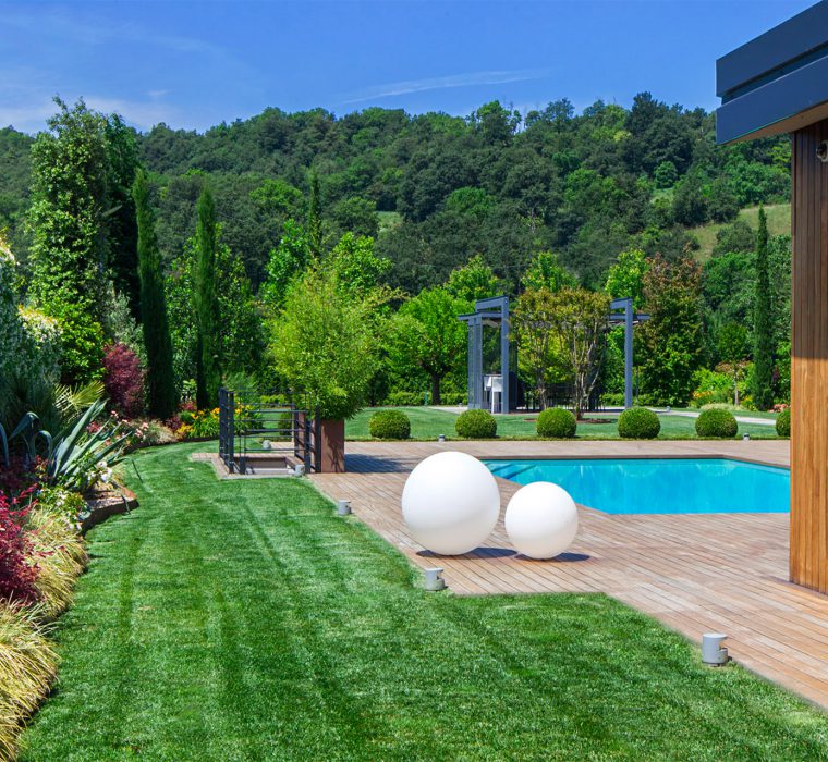 Progettazione giardini, Realizzazione giardini, Impianto di irrigazione, Impianto di illuminazione, Pavimentazione, Piscina