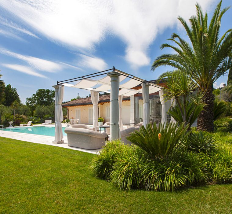 Ci troviamo a San Felice del Benaco, poco distante da Salò. Una seconda casa che il proprietario desiderava riqualificare con esterni adatti a vivere la quotidianità della bella stagione in compagnia della famiglia e degli adorati nipotini. Siamo intervenuti con un progetto di garden design i cui fulcri sono stati la realizzazione della piscina e l’allestimento di un gazebo, quest’ultimo pensato come prolungamento del portico così da accentuare e completare la struttura a L dell’abitazione.